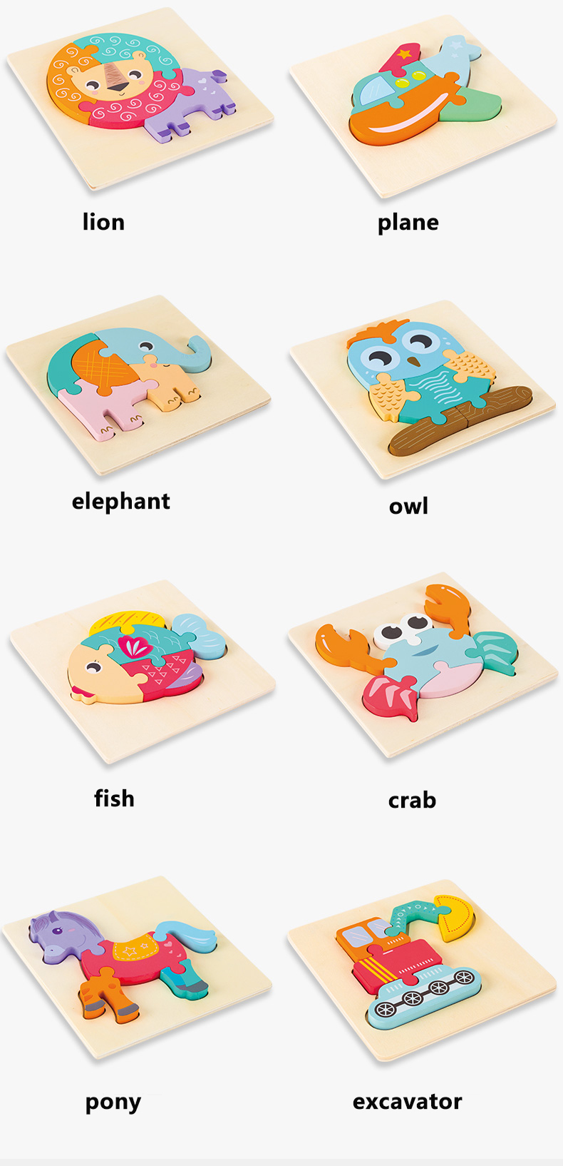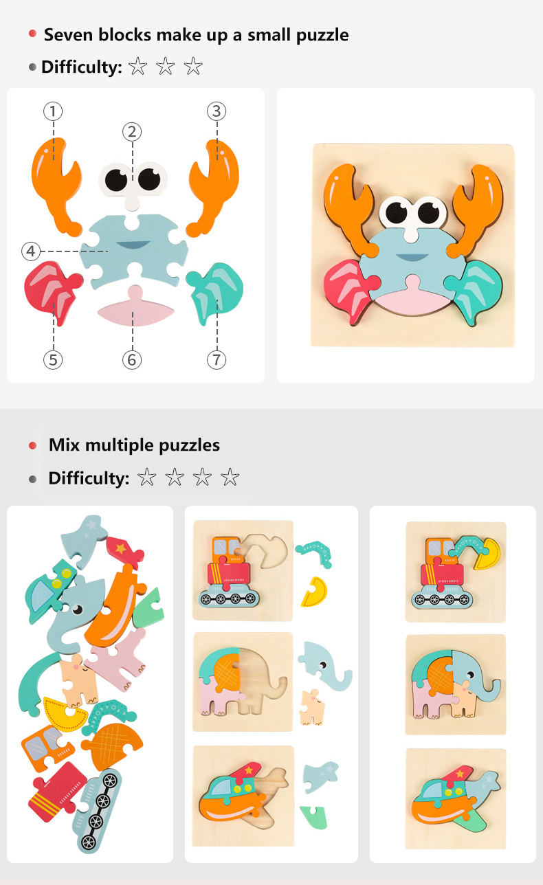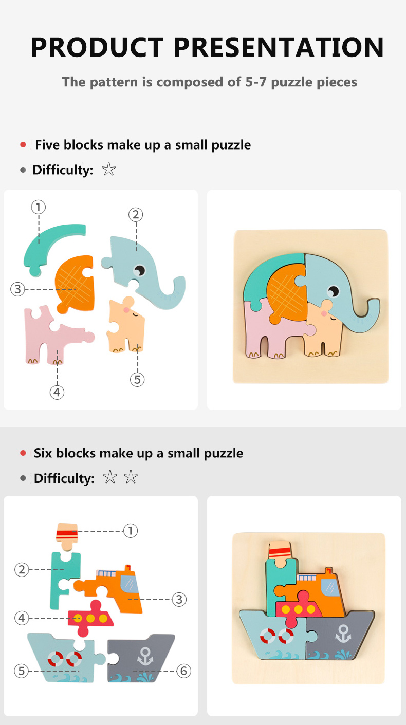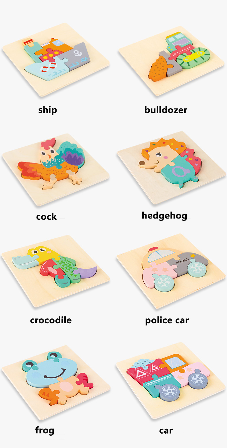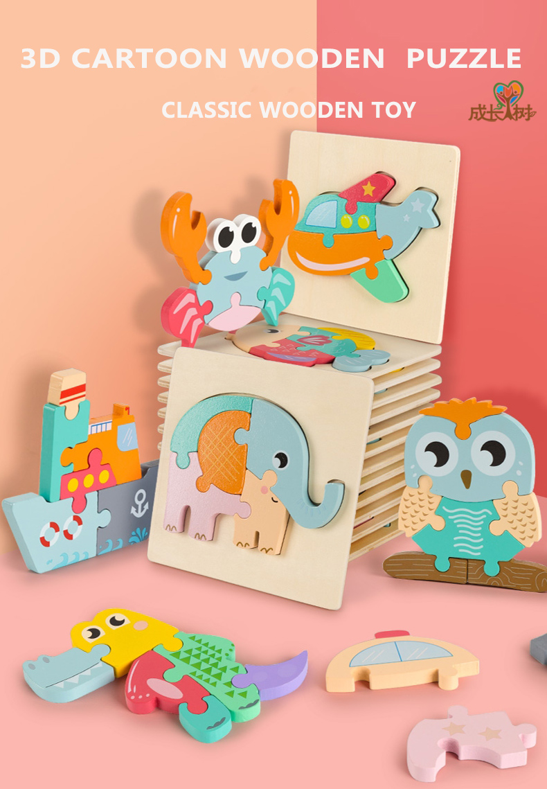 3D Wooden Jigsaw Puzzle Toys Cartoon Wholesale Customized Kids Self Assemble Educational Toys