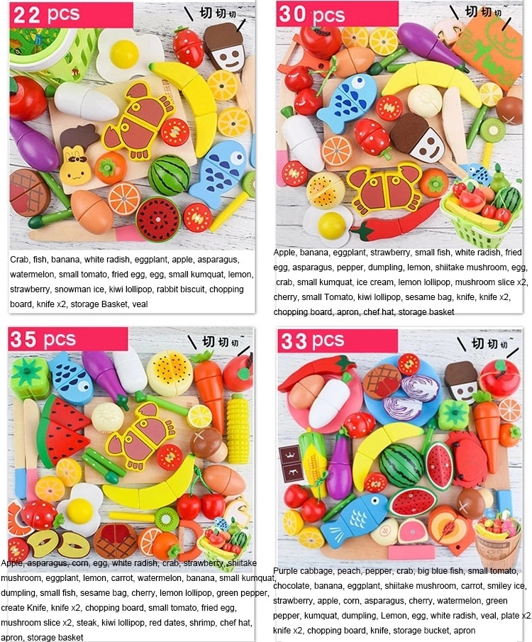 35PCS SET:Apple, asparagus, corn, egg, white radish, crab, strawberry, shiitake mushroom, eggplant, lemon, carrot, watermelon,