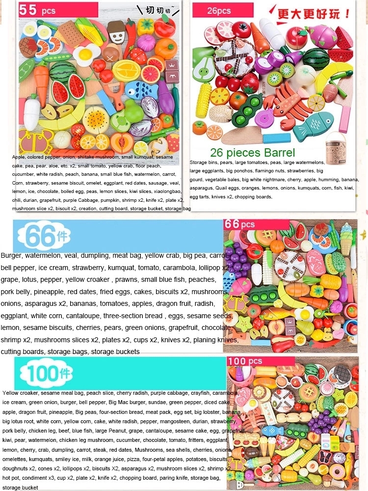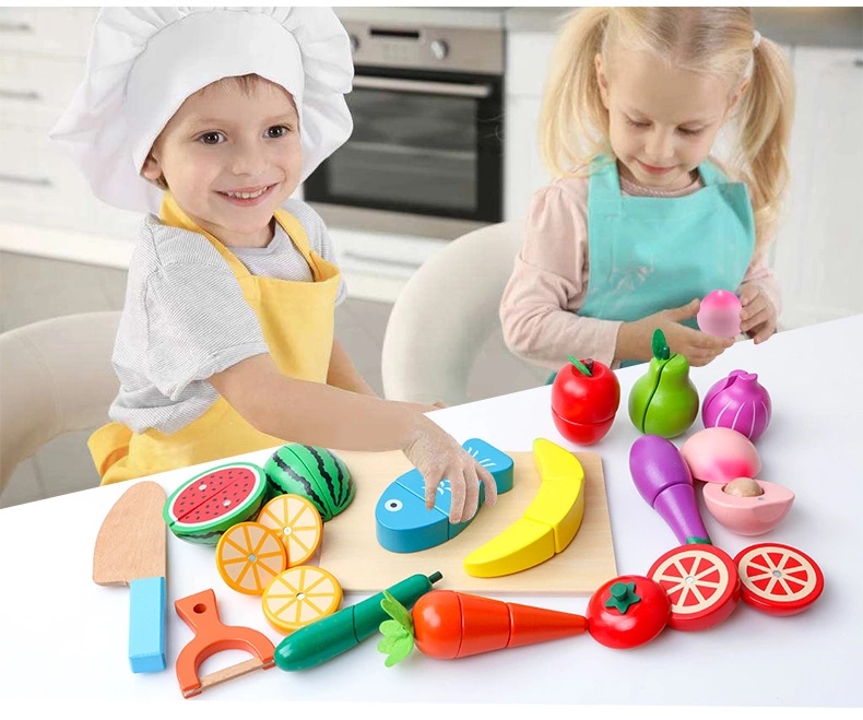 Children Early Learning Educational 100PCS Set Cooking Wooden Kitchen Toy Magnet Cutting Vegetable Fruit Toy