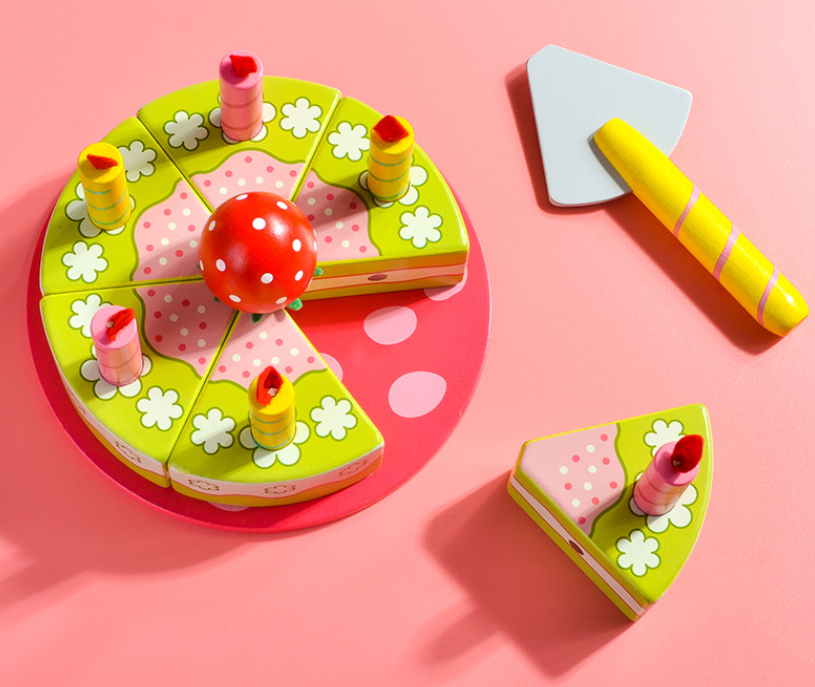 Hot sale new style role playing wooden birthday cake cut toys wooden toys cake cutting set wooden magnetic cake cutting toys