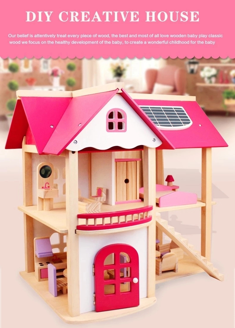 Wooden Houses Pretend Toy Wooden Doll House/ Kids Wooden Doll Villa with Doll Room Furniture dollhouse